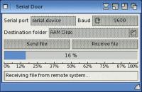 Serial Door is a program that allows to transfer files directly from one computer to another, using a serial connection. It has been designed to work with heterogeneous systems, both equipped with a RS-232 serial port. The mechanism works by launching Serial Door on both computers, connected to each other via serial port (e.g. with a null modem cable), and managing both ends of the communication with just a few settings (essentially, the port to be used and the transfer speed). The mechanism implemented has been designed to be as simple as possible, so is not reserved to advanced users.