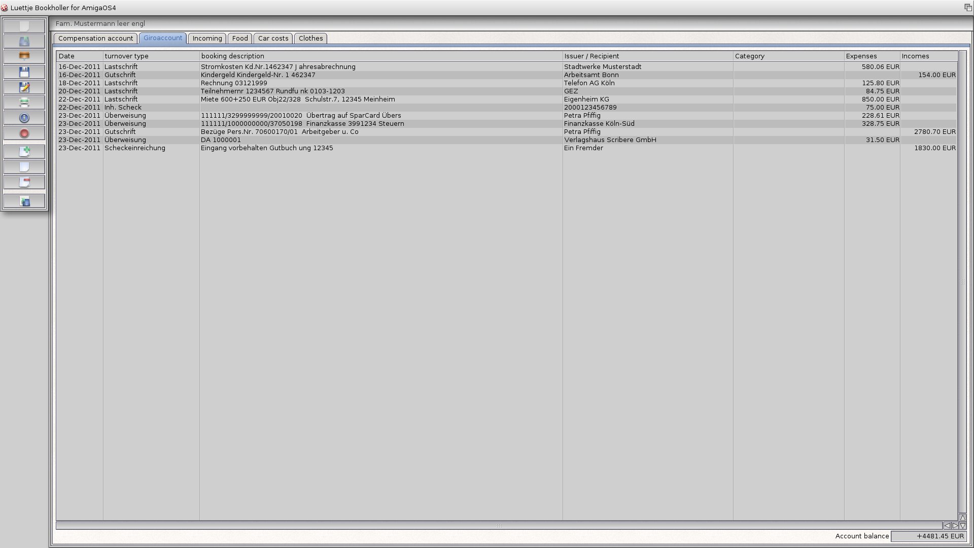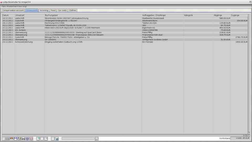 The main screen with some test-data from a csv-import file from the german