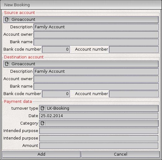 The dialog for input of booking datas.