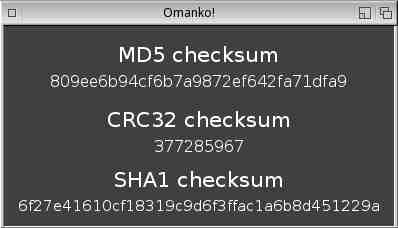 Description: File tool to test the MD5, CRC32, SHA checksums